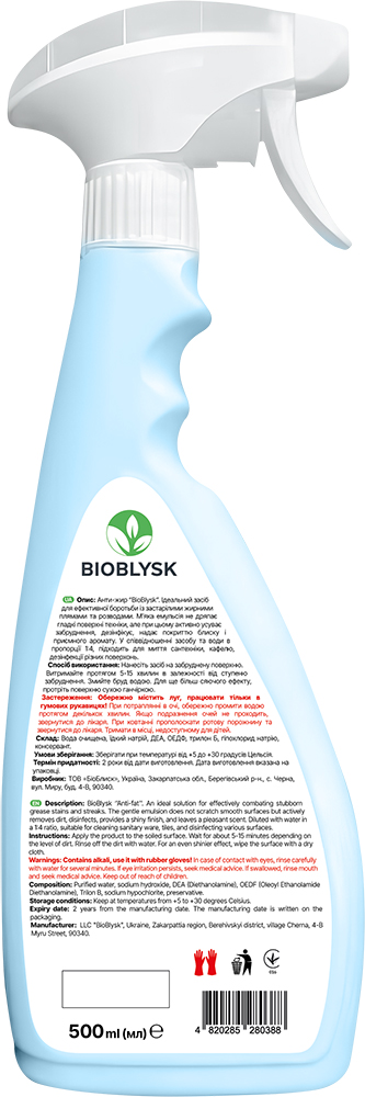 How to use: Apply the product to a contaminated surface. Hold for 5-15 minutes depending on the degree of contamination. Rinse the dirt with water. For an even more radiant effect, wipe the surface with a dry cloth.