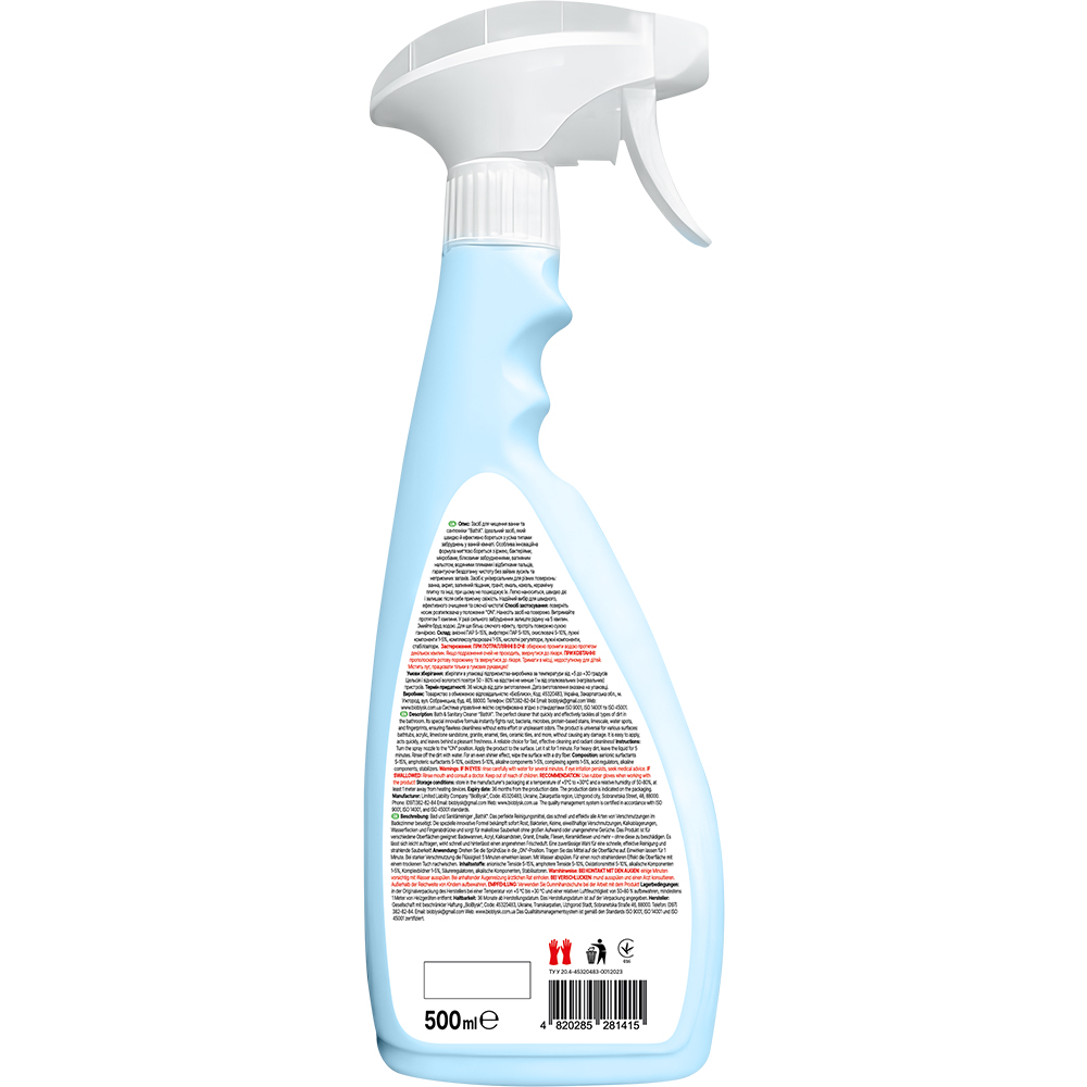 Bath and plumbing cleaning product. Ideal tool that quickly and effectively fights all types of dirt in the bathroom. A special innovative formula instantly fights rust, bacteria, microbes, protein contaminants, limescale, water stains and fingerprints, guaranteeing impeccable purity without unnecessary effort and unpleasant odors. The product is universal for different surfaces: bath, acrylic, lime sandstone, granite, enamel, tile, ceramic tiles and others, while not damaging them. Easily applied, quickly acts and leaves behind a pleasant freshness. Reliable choice for quick, effective cleansing and radiant cleanliness!