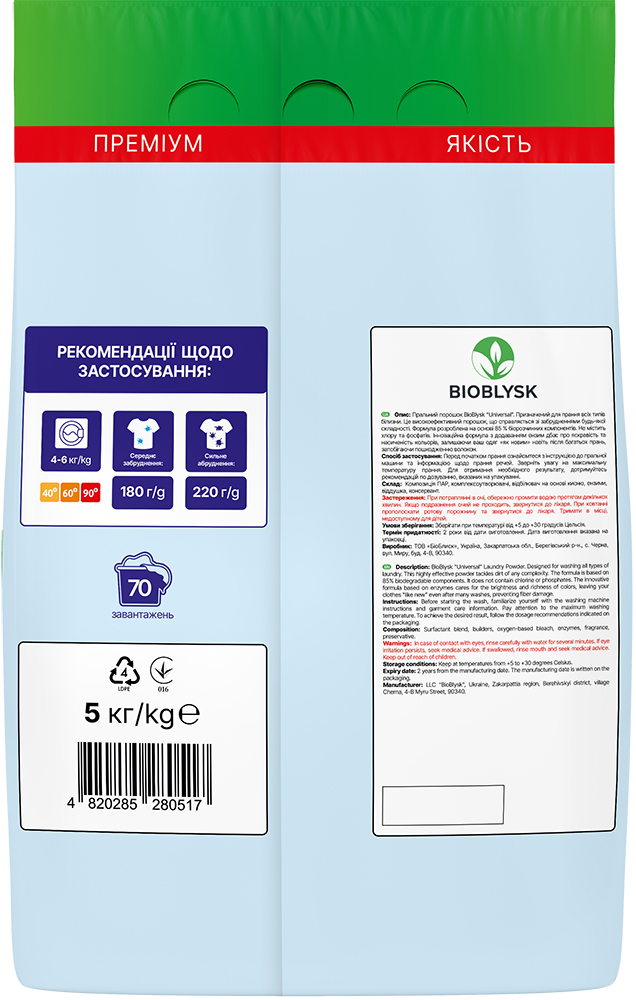 BioBlysk Washing Powder “Universal” 5 kg