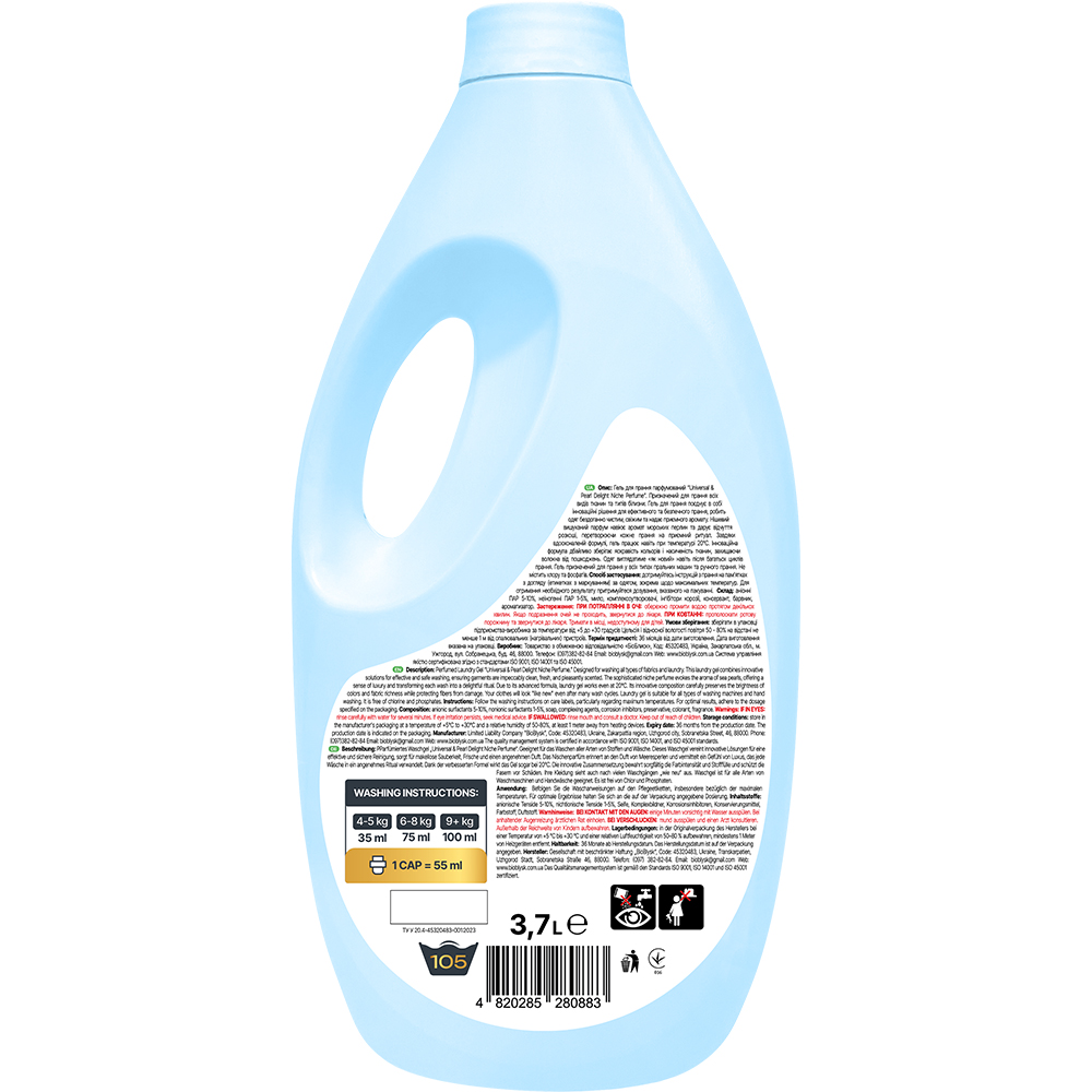 Drying gel perfumed "Universal & Pearl Delight Niche Perfume". Designed for washing all types of fabrics and types of linen. The laundry gel combines innovative solutions for efficient and safe washing, makes clothes flawlessly clean, fresh and give a pleasant aroma. Niche exquisite perfume inspires the aroma of sea pearls and gives a sense of luxury, turning every wash into a pleasant ritual. Thanks to the improved formula, the gel works even at a temperature of 20 ° C. The innovative formula carefully preserves the brightness of colors and saturation of tissues, protecting the fibers from damage. Clothes will look "like new" even after many washing cycles. The gel is designed for washing in all types of washing machines and hand washing. Does not contain chlorine and phosphates.