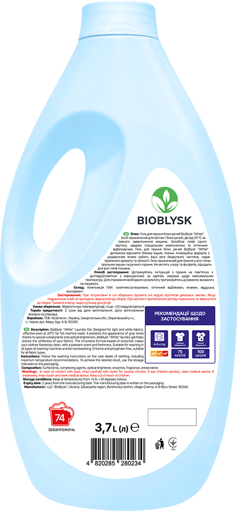 The product is designed for light and white things, acting from 20 °C at full load of the machine. Prevents the appearance of a gray hue, thanks to special components and optical bleach. White Whywish gel will help restore the whiteness of your fabrics. An innovative formula with addition enzyme makes your things flawlessly clean, gives you a pleasant aroma and freshness. The gel is designed for washing in all types of washing machines and hand washing. Does not contain chlorine and phosphates, suitable for all types of fabric.