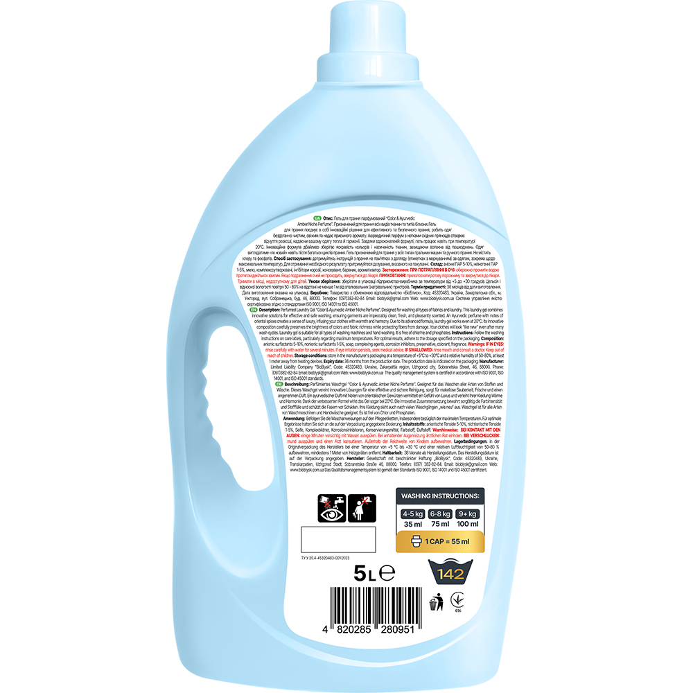 Drying gel perfumed "Universal & Pearl Delight Niche Perfume". Designed for washing all types of fabrics and types of linen. The laundry gel combines innovative solutions for efficient and safe washing, makes clothes flawlessly clean, fresh and give a pleasant aroma. Niche exquisite perfume inspires the aroma of sea pearls and gives a sense of luxury, turning every wash into a pleasant ritual. Thanks to the improved formula, the gel works even at a temperature of 20 ° C. The innovative formula carefully preserves the brightness of colors and saturation of tissues, protecting the fibers from damage. Clothes will look "like new" even after many washing cycles. The gel is designed for washing in all types of washing machines and hand washing. Does not contain chlorine and phosphates.